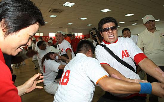 7月6日,上海“迎奧運 展風采”首屆無償獻血志愿者趣味運動會在上海體育學院舉行。新華社發