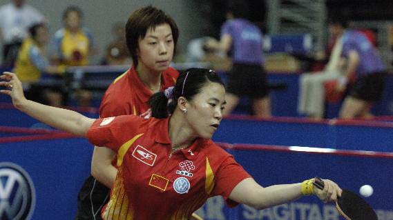 2006年6月16日,中國選手王楠(前)/張怡寧在女子雙打首輪比賽中以4比1戰勝韓國選手李恩實/文炫晶。當日,2006年中國乒乓球公開賽在江蘇昆山繼續進行。新華社發