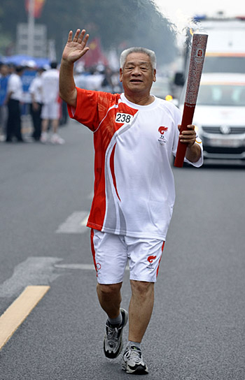 8月6日至8日,北京奧運火炬在京傳遞。火炬手穆祥雄在進行火炬傳遞。