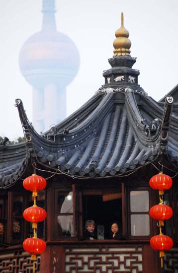 游客在豫園內(nèi)觀賞夜景。本報(bào)記者:裴鑫