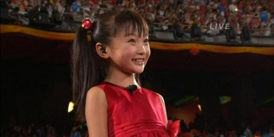 “五星紅旗迎風飄揚,勝利歌聲多么響亮……”清脆的童音響徹“鳥巢”上空。前晚8時06分,北京奧運會開幕式升旗儀式前,一名身著紅色紗裙的女孩出現在電視畫面中,她緊攥拳頭,領唱《歌唱祖國》。 許多人被她感動了。 她就是被張藝謀“欽點”的9歲小童星林妙可,今年9歲,在北京東城區(qū)西中街小學就讀三年級。