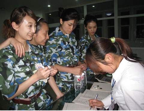 北京時(shí)間6月3日晚,來自全國(guó)各地的近200名奧運(yùn)會(huì)開閉幕式禮儀引導(dǎo)員入住京郊的訓(xùn)練基地。奧運(yùn)會(huì)到來之前,她們將在這里進(jìn)行為期兩個(gè)月的集訓(xùn)。這些姑娘們將在奧運(yùn)會(huì)開幕式上閃亮登場(chǎng),向全球觀眾展現(xiàn)中國(guó)女性獨(dú)特的氣質(zhì)與魅力,因此這段時(shí)間里,她們的食宿和訓(xùn)練課程是人們關(guān)注的焦點(diǎn):怎樣打造她們,怎樣呵護(hù)她們,想必沒有人不關(guān)心。