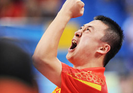 8月16日,中國隊在北京奧運會乒乓球男團半決賽中以3比0戰勝韓國隊,挺進決賽,將于18日與德國隊爭奪金牌。