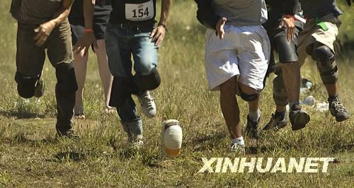 8月16日,在加拿大不列顛哥倫比亞省惠斯勒舉辦的滾奶酪節(jié)上,滾奶酪比賽的參賽者跑下小山追趕一塊重約4.8公斤的奶酪。新華社/路透