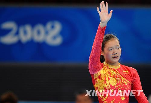 8月17日,程菲在自由體操比賽中出現失誤,賽后含淚向觀眾揮手致意。當日,中國選手程菲在國家體育館進行的北京奧運會女子自由體操決賽中以14.550分的成績獲得第七名。新華社記者