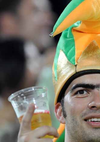 8月18日,巴西球迷。當日,北京奧運會沙灘排球1男子/4決賽結束。