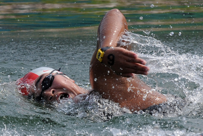中國選手方晏喬在女子10公里馬拉松游泳比賽中,她以2小時(shí)01分07秒9的成績名列第19。
