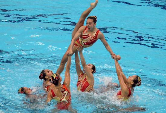 中國“美人魚”終于登上奧運會領獎臺,實現了中國花樣游泳自1988年首次參加奧運會以來的重大突破!在23日下午舉行的北京奧運會花樣游泳集體項目比賽中,她們完美演繹了一曲震撼人心的《黃河》,最終以97.334分的總成績獲得一枚寶貴的銅牌。 中國姑娘在昨天的集體技術自選動作比賽后暫居第三。當天的自由自選動作比賽中,中國隊第五個出場,表現主題為中國龍,背景音樂則是大氣磅礴的《黃河》,還融入了民歌《茉莉花》等元素。 時而如鮮花綻放,時而如蛟龍出海,時而如波浪翻滾,中國“美人魚”的完美表演獲得了觀眾的熱烈掌聲,也得到了裁判的認可。最終,中國隊的自由自選動作得分為48.750分,以總成績為97.334分暫居第一。 隨后出場的日本隊也表現了龍的主題,但整體動作缺乏新意,她們只得到47.167分,總成績為95.334分,與美國隊并列,排在中國和加拿大隊之后。 “水立方”立即傳出熱烈的歡呼聲,中國姑娘知道自己戰勝了實力最為接近的日本隊,她們將首次登上奧運會的領獎臺。 最后兩個出場的分別是實力強大的西班牙隊和俄羅斯隊。俄羅斯隊是連續5屆世錦賽冠軍,同時還在悉尼、雅典兩屆奧運會上包攬了雙人和集體金牌,在20日結束的北京奧運會雙人項目上,她們已經把金牌收入囊中。 最終,裁判對俄羅斯的表現給出了8個滿分10分,她們的自由自選動作得分為滿分50分,從而以99.500分的總成績再次衛冕集體項目冠軍,這也是她們連續三屆奧運會包攬花樣游泳金牌。西班牙隊是雅典奧運會兩個項目的第四名,她們最終獲得集體項目銀牌,這也是她們在北京奧運會上獲得的又一枚花樣游泳銀牌。 中國姑娘和教練相擁而泣,慶祝這來之不易的勝利。 “獲得這塊獎牌是意料之中的事,但當這一切真的降臨了,還是覺得特別激動!”曾三次參加奧運會的隊長張曉歡激動地說,“堅持這么多年,我們終于有了收獲!” “中國給我這么大的信任,能取得奧運會獎牌當然很開心!”來自日本的中國隊教練井村雅代開心地說,“這是我的夢想,今天我們終于夢想成真;中國姑娘訓練十分刻苦,獎牌就是她們的目標。” 曾多次帶領日本隊獲得奧運會獎牌的井村雅代還說:“作為日本教練帶領中國隊獲得獎牌,說明日本教練的水平得到世界的認可! 雅典奧運會亞軍日本隊最終與美國隊獲得并列第五,日本隊的小林寬美出現賽后虛脫,同時正是由于小林寬美力量不夠,在最后階段腳底觸到水池底部被扣分,影響了日本隊的積分排名。加拿大隊在比賽中表現了中國十二生肖的主題,她們最終獲得第四名。