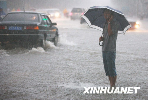 當(dāng)日清晨,上海突遭強雷暴雨襲擊,局部地區(qū)雨量已達(dá)大暴雨程度,1個半小時內(nèi)雨量超過了100毫米。