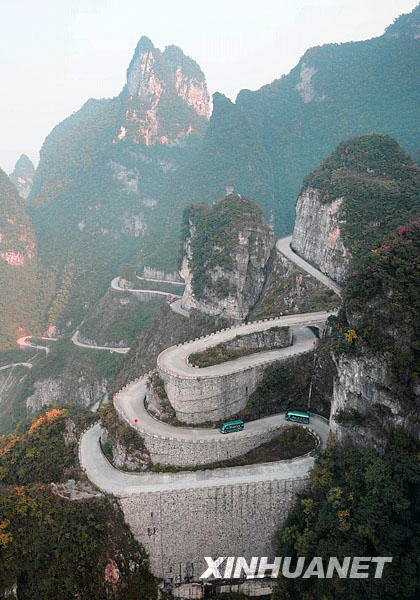 景色迷人的張家界天門山國家森林公園盤山公路景觀(10月16日攝)。