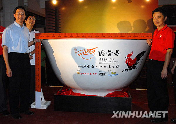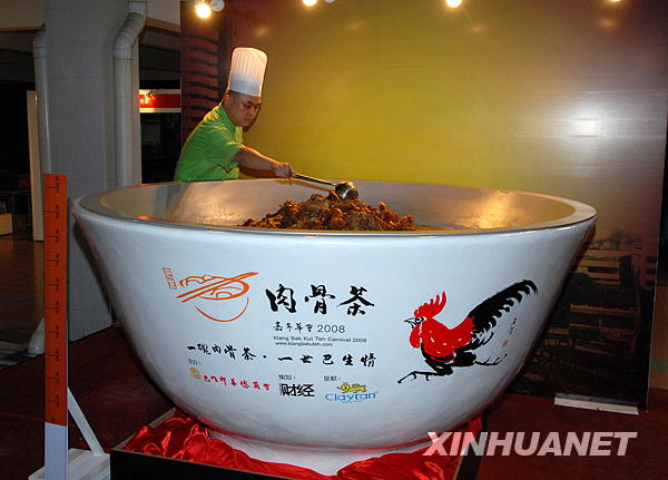 當(dāng)天在此舉行的2008肉骨茶嘉年華會(huì)上,馬來西亞中華工商聯(lián)合會(huì)所屬巴生市中華總商會(huì)推出世界最大碗肉骨茶。這碗肉骨茶由當(dāng)?shù)?家肉骨茶店用500公斤豬肉、450公升肉骨茶湯和50公斤藥材制成,碗口直徑182.88厘米,高91.44厘米,已被列入馬來西亞記錄大全,并將申報(bào)世界吉尼斯紀(jì)錄。 |