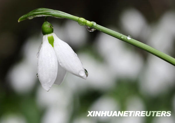 2月3日,一朵雪花蓮在馬其頓首都斯科普里的一個庭院內(nèi)開放。雪花蓮屬植物是春天最早開花的球根花卉。新華社/路透