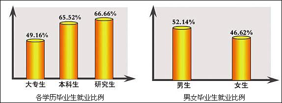 【調(diào)查】男性畢業(yè)生的“已簽約”和“已有意向但沒有簽約”的比例為52.14%,女性畢業(yè)生的比例為46.62%,兩者相差不到6個百分點(diǎn),相比去年14個百分點(diǎn)的差距有所縮小。此外,兩者對于可接受的工資起點(diǎn)也很一致,都主要集中在1000元—3000元。 【解讀】北大公共政策研究所分析認(rèn)為,隨著政府在消除就業(yè)歧視和實(shí)現(xiàn)平等就業(yè)方面政策導(dǎo)向性的增強(qiáng),性別差異在大學(xué)生求職過程中的影響盡管依舊存在,但程度已大為減輕。此外,造成這種現(xiàn)象的原因還和女大學(xué)生比例增加有關(guān)。