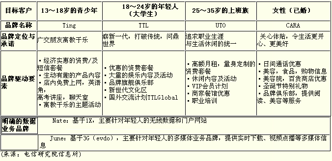1x業務。KTF和SKT分別在2000年和2002年推出了EV-DO網絡服務,目前其覆蓋范圍最大達81個城市,可支持的數據傳輸速率達到2.4Mbps,可提供GPS、移動多媒體、虛擬通信、移動會議等多種服務。LGT目前還未開通EV-DO服務。 ★市場增長情況 目前,韓國移動電話用戶數達3700萬,移動電話普及率為77%,移動市場形成了由SKT、KTF和LGT三足鼎立的局面,其中SKT、KTF和LGT的用戶數分別為1900萬、1200萬和600萬。據ARC集團分析,2004年由于EV-DO業務在韓國推廣良好,韓國3G移動電話的銷量比2003年增長了117%。2005年EV-DO在3G市場的占有率達到34%,到2009年有望達到91%。 2004年1月以來,韓國三大移動運營商先后開放了號碼可攜帶服務,KTF與LGT等市場挑戰者利用這一政策不同程度地提升了自身的3G市場份額。目前,韓國SKT和KTF的EV-DO用戶市場份額分別為65%和35%。 韓國政府出于減輕高通專利費壓力及擴大國際市場空間等戰略考慮,于2000年向SKT和KTF發放了WCDMA牌照。2003年12月,SKT與KTF分別開通了覆蓋首爾地區的WCDMA網絡,韓國從而成為全球唯一的運營商同時運營兩種3G制式的國家。雖然韓國WCDMA服務商用化至今已有兩年多,但受多種因素的影響,用戶增長緩慢。到2005年11月底,僅發展用戶1.2萬戶。 ★業務發展情況 在業務發展方面,SK電訊的經驗值得一提。SKT把用戶按年齡段進行了細化,在全面研究每個年齡段用戶需求特點的基礎上,提供具有針對性的品牌服務,以鞏固并擴大用戶規模。目前,SKT主推Ting、TTL、UTO和CARA這4種客戶品牌,見表2。 作為韓國第二大移動運營商,KTF基于1X和EV-DO網絡,將其數據與增值業務劃分為Magic@、Fimm兩大綜合門戶品牌及Multipack、K-merce、VIZ、Telematics等多個子品牌。Magic@是KTF于2001年1月推出的最基本的數據與增值業務門戶品牌,所涵蓋的主要是以短信(定制、推送類)、MMS、鈴聲下載等為主的2.5G業務。無論是2G的CD-MAIS95用戶,還是cdma